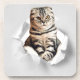 Funny Grey Cat Popping thru Torn Paper Illusion Coaster