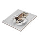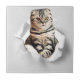 Funny Grey Cat Popping thru Torn Paper Illusion Tile