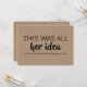 "THIS WAS ALL HER IDEA my (future) wife made me give you this" "Will you be my Groomsman?" Modern and funny proposal cards.