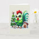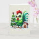 The grumpy chicken is not too pleased for his feathers have been colored all green for the christmas season. There is snow on the ground and a christmas tree with a sign warning .. not today santa .. he is not a very happy bird. Christmas fun