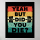 Humour Motivational Leg Day Saying Yeah But Did You Die TShirt. Complete your collection of novelty athletics, fitness, bodybuilding, weightlifting accessories for him her.