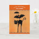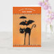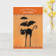 Creative Halloween card featuring funny black cat and an acrobat bat with an umbrella. Add his or her name to personalise.