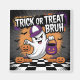 Playful Halloween ghost holding pumpkins with “Trick or Treat Bruh.” Eye-catching, modern,