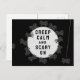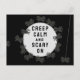 Creative Halloween postcard featuring funny creepy spiders and "Keep Calm" quote pun.