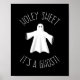 Halloween humour for anyone who's been stuck for a costume. Just grab some bedding, cut a couple of holes and ... holey sheet ... It's a ghost! A black poster featuring our circular black and white design - cute cartoon ghost and pun caption.