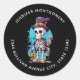 Funny Halloween Skeleton wearing Top Hat Address Classic Round Sticker