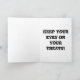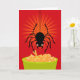 Keep your eyes on your treats! You never know who (or what) might be dropping in on your Halloween goodies. Bright orange/red background creates a great contrast for the green bowl and yellow/orange candy corn pieces. Not-too-scary black spider, dangling from above completes this fun greeting card. There's lots of space on the cover and inside, too, for adding a name or message. Original art/design and verse are © Penny Cork.