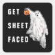 Creative Halloween gift stickers, party favour labels and envelope seals featuring the original "Let's Get Sheet Faced" ghost carrying a trick-or-treat pumpkin bucket.