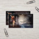 Funny business card with a vintage pin-up girl in a witch outfit. The background features a haunted house at full moon with a bat flying around. Perfect for a Halloween party supply business, costume reseller or other Halloween related purposes.