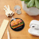 Fun and tasty hamburger theme keychain template designed with a graphic image of a cheeseburger in the background and text you can customise online. Give these keychains out at special events, as party favours, or promotional message keychains in a budget friendly design.
