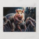 Funny hamster riding a giant spider fantasy castle postcard