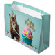 Funny Happy Birthday Cat with Cupcake Large Gift Bag
