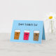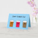 This humourous greeting card says Happy Father's Day and has three cartoon glasses of fizzy drinks. One has a moustache, and the middle one has a goatee beard and dark glasses, shades.