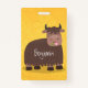 Funny happy yak eating grass cartoon illustration ID badge