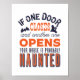 If One Door Closes Another Opens Your House Is Haunted. Funny Halloween costume design to wear when you go Trick or Treat. This creepy and freaky merchandise is great for a spooky night Halloween party with scary ghost or horror movie theme. Go well with your Halloween decoration of Jack O Lantern pumpkin, ghost, skull, skeleton, witches and black cats. Cool vintage and retro Halloween outfit for those who love humour, sarcasm, jokes, witty quotes and puns.
