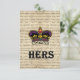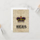 Fun funny "hers" text with a purple crown illustration on a vintage paper handwritten background.