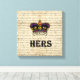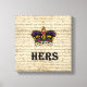 Fun funny "hers" text with a purple crown illustration on a vintage paper handwritten background.