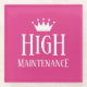Funny High Maintenance diva princess crown Glass Coaster. Hot pink or custom colour square beverage coaster. Funny Birthday gift idea for women and girls. Elegant typography with crown logo. Buy one for wife, girlfriend, daughter, coworker, bride, friend etc.
