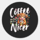 Funny Highland Cow Coffee Makes Me Nicer Quote Hum Classic Round Sticker