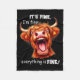 Funny Highland Cow It's Fine I'm Fine Everything I Fleece Blanket