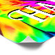 A cool sphynx cat is looking groovy in his psychedelic clothes.
