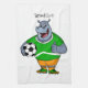 Funny hippo soccer player cartoon illustration tea towel