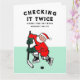 Creative ice hockey Christmas holiday cards featuring Santa hockey player and funny quote.