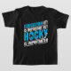Funny hockey themed T-shirt with blue and white text on a black background reads Education is Important But Hockey is Importanter!