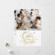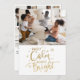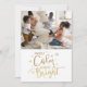 Funny Rarely Calm Always Bright saying in gold foil hand lettered brush script holiday card with one photo on front and four photos with your message and names on back. This card will be a keeper and people are going to love it.