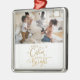 Funny Rarely Calm Always Bright saying in gold hand lettered brush script with one family photo makes this ornament a keepsake. See coordinating items in our shop, Enchanted Finch.