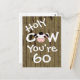 Humourous Holy Cow You're 60 Birthday Greeting Postcard with Faux Barn Wood Background.