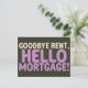 Make your big move official with this funny new home announcement postcard in green and purple! Featuring bold retro typography and a playful message, this first home moving card is perfect for sharing your exciting transition from renting to homeownership. Whether you're inviting friends to a housewarming party or just letting loved ones know your new address, this bright and cheerful moving announcement is a fun way to celebrate this major milestone.