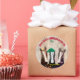 Funny decorated horse trio wearing Christmas lights, winter hat and holding a candy cane on this to/from sticker for funny animal or western lovers, personalised with your fun holiday message and your name