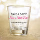 Funny shot glasses for her 40th birthday part. "Take a shot she's still hot" is written in black typography and a hot pink script.
