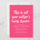 Modern times call for a modern baby shower invitation. If you're taking the party online due to social distancing, this is a perfect invitation for you. The bold playful text reads "This is not your mother's baby shower" and the party details below include room for online social meeting information, registry, shipping info and more along with the party details. The back features a coordinating playful dot pattern. The vivid hot pink colour is default, but it can be changed by clicking "customise further." Great for co-ed showers, adoption showers and two dad or two mum couple showers too - and anyone who appreciates your sense of humour and wit!