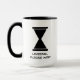 Funny hourglass sand clock loading please wait coffee Mug. Personalise with your own funny quote. Modern black and white cup design. Great for home or office. Black inside and handle.