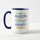 "My Housekeeping Style is best described as there appears to have been a struggle" declares this cute mug on two sides.Between the quotes is a small custom text field that currently says "Oh, well..." Colours used include blue, orange, and green. If your house looks like ours (semi-controlled chaos!) then use this mug proudly! I have one myself.