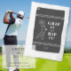 If you're looking for a fun golf towel that will make you smile every time you wipe your clubs, look no further! Humourous design features a catchy slogan that says "Grip it and rip it" in a preppy bold font, along with a template for custom personalised monogrammed initials or name. It also showcases a line art drawing of a male silhouette figure showing off his swing. Two thin white stripes above and below break the design into thirds, adding a classy touch. All print is white on a classic black background. Additionally, ALL colours in this design are customisable, including the golf figure. If you have any questions regarding this or any of my designs please contact beachpausedesigns@gmail.com. Custom colour requests accepted.