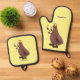 Funny hungry ugly flea cartoon oven mitt & pot holder set