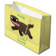 So very happy with the quality of this bag! The thickness of the paper along with the glossy finish I just love it! Can’t wait to give our pup his gifts in this awesome custom gift bag! The printing came out amazing! The black crisp clear printing on the white bag looks amazing! Very pleased with this purchase!