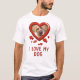 Funny pet owner t-shirt featuring the saying "I love my dog", with a photo of your doggy in the shape of a love heart, and a scattering of little red hearts.