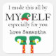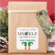 Funny I made this by My Elf Name. A humourous play on words with an elf’s hat in place of the S in Myself and cute elf legs and feet coming upwards from the bottom edge, for your homemade gift packaging and wrap.