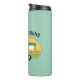 Funny thermal tumbler has "I sleep around" customisable text with cute yellow and green retro style RV camp trailer on green background . Perfect for those that love the lifestyle of RV camping in campsites, rv parks and remote off the grid spots- where parking your rig in multiple places for days, weeks or months is just a way of life.