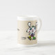 This mug is imprinted with a Bach Solos Suite for Cello. It was purchased as a thank you gift for a professional cellist friend who often performs this work. The cup is made of a high-grade ceramic and is fairly light. The walls are not too thick and it is a small to medium size. It's well finished, has a high-gloss glaze, and looks very elegant. The Bach Solo Suite score on the example I received was clear and had high contrast. Even though the staffs were small, the music was easy to read. The cellist who received this cup immediately knew what the music was as soon as she set eyes on it.