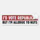 Funny I'd Vote Republican But I'm Allergic To Nuts Bumper Sticker