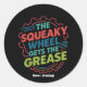 Funny Idiom Retro Squeaky Wheel Gets the Grease Classic Round Sticker