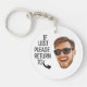 Funny personalised keychain for men with the quote "If lost please return to" and a picture. Upload a photo to make it your own. To use a cut-out, the background needs to be a transparent png file. To make the cut-out of the face you can download any free mobile app or use an editing program like Canva or photoshop.