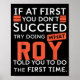 Funny Insrational Quotes Men Women Kid If At First You Don't Succeed Try Doing What Roy , Small, Black