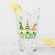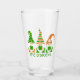 Funny personalised beer glass featuring three cute Irish gnomes clad in orange, green and shamrocks. Add your name in green Celtic-style typography.