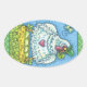 FUNNY IRISH HEN, GREEN EGGS AND SHAMROCKS CUTE OVAL STICKER